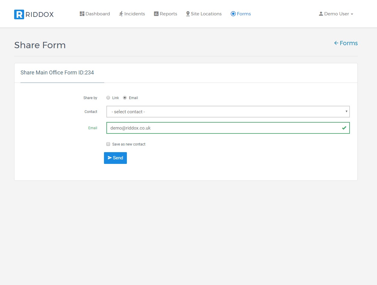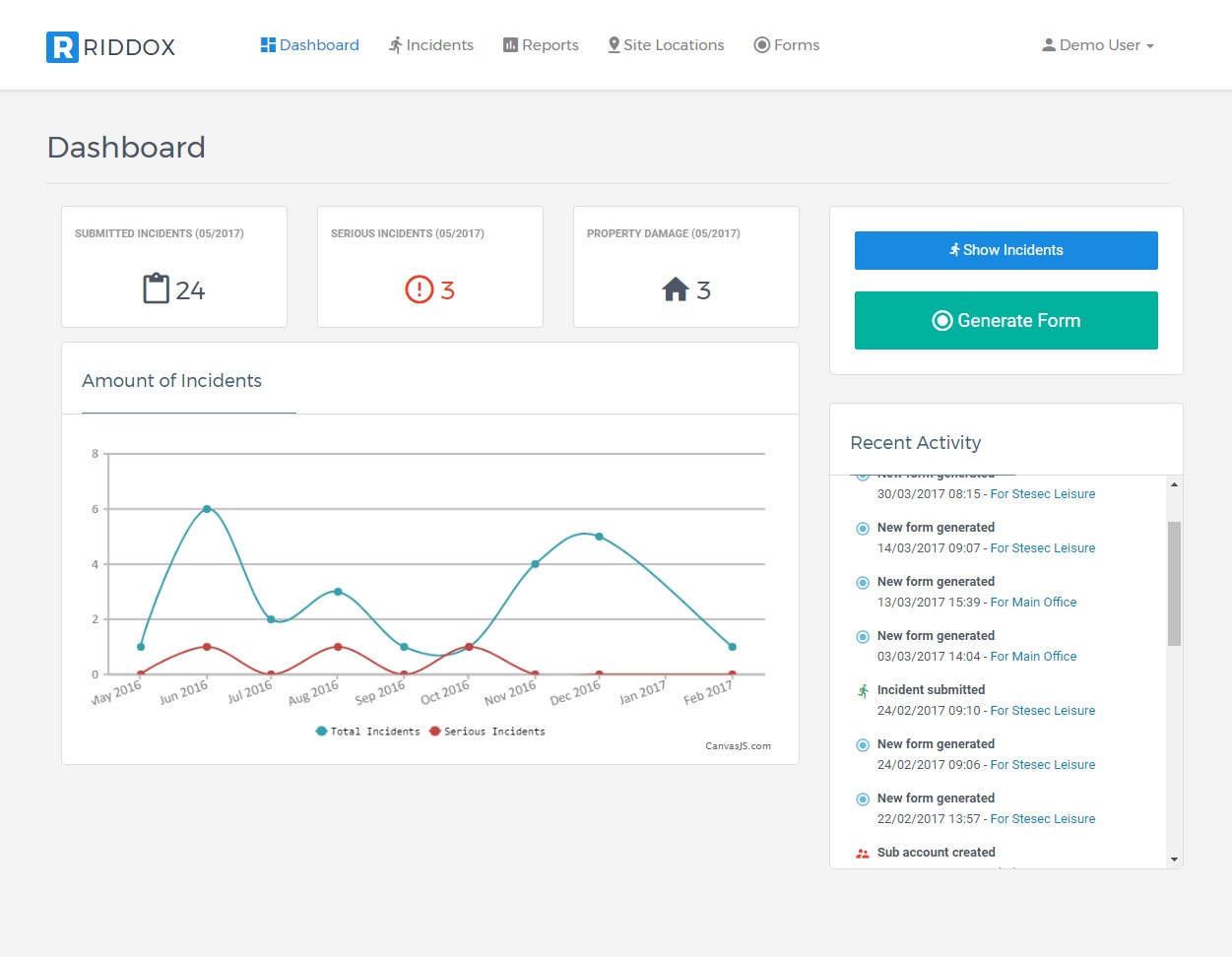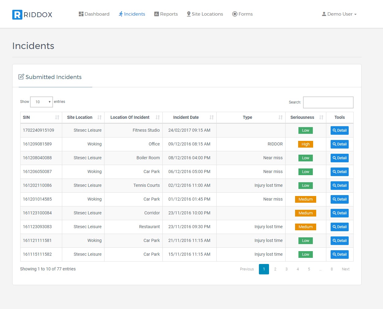 Upon the submission of the incident form all data will immediately be transfered into your Riddox.co.uk account ready for viewing by persons with relevant access permission.